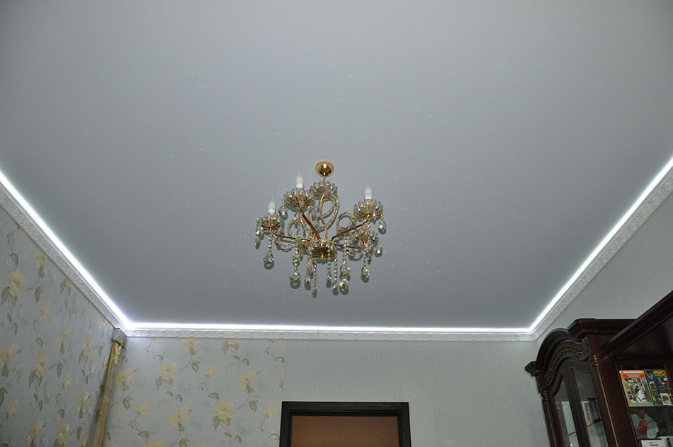 Матовая фактура – ответит всем требованиям ценителей классики, потолки будут идеально ровными, имитирующими строгую побелку или штукатурку, это для тех кому нужен идеально ровный и долговечный потолок, без дополнительных эффектов. Пастельные тона и отсутствие бликов позволяют создать интерьер помещения в нежном спокойном стиле. Можно так же использовать под фотопечать