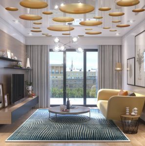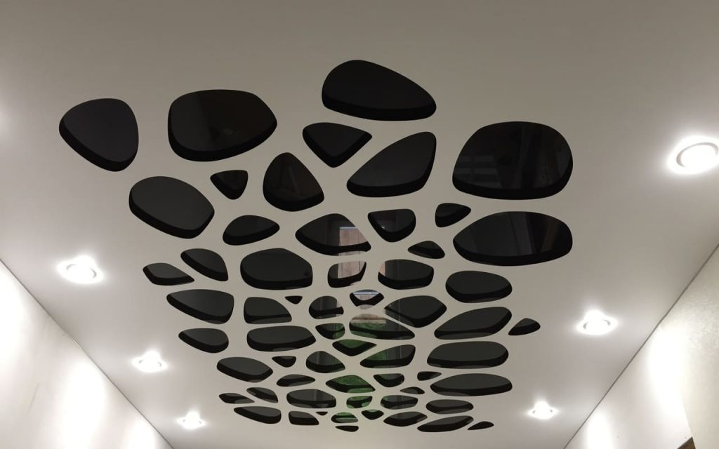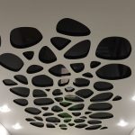 Участки потолка, выполненные по технологии 3D перфорации, придают объемный вид интерьеру и делают его не похожим на ранее смонтированные потолки.