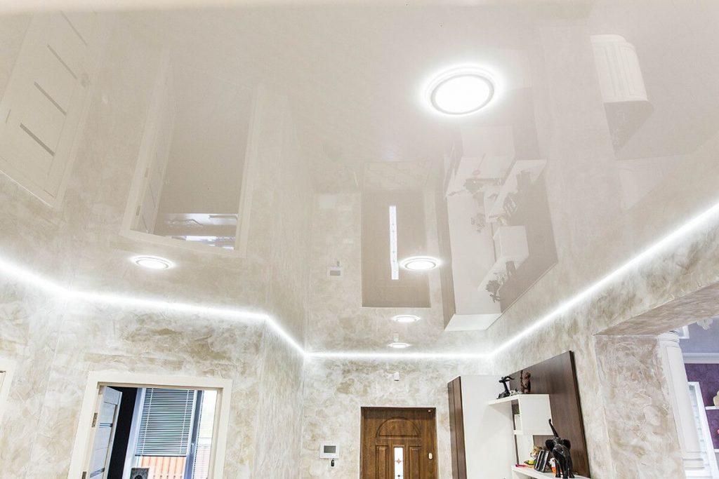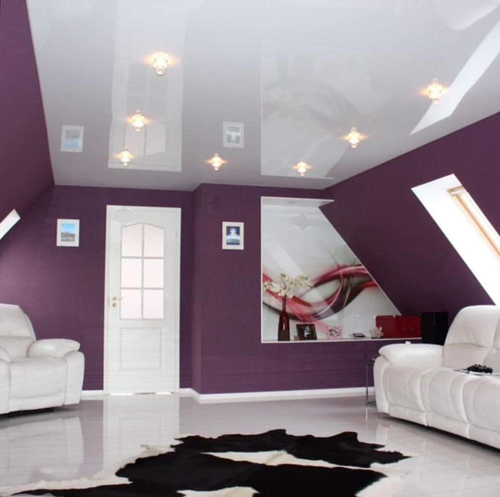 LAC sau LUCIU – Tavanele acestei texturi detin un efect reflectorizant si oglindit ,este prezentat in gama cea mai variata de culori,intrucit nici in culorile inchise nu apasa,nu intuneca si nu micsoreaza incaperea . Mai mult decit atit din cauza oglindirii tavanele lucioase maresc vizual volumul incaperii.